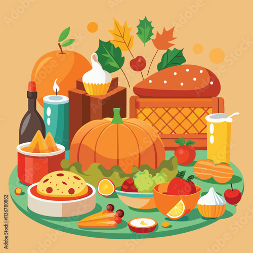 Charming Thanksgiving Artwork Displaying Festive Meal with Autumn Theme