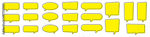 Chat bubble in yellow, speech bubble, message box set. Yellow quote background.