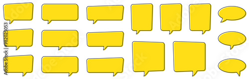 Chat bubble in yellow, speech bubble, message box set. Yellow quote background.