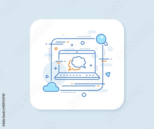 Chat comment line icon. Abstract vector button. Comic speech bubble sign. Social media message symbol. Chat message line icon. Laptop concept badge. Vector