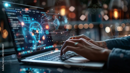 Chatbot with AI (Artificial Intelligence), businessman using laptop connection to AI