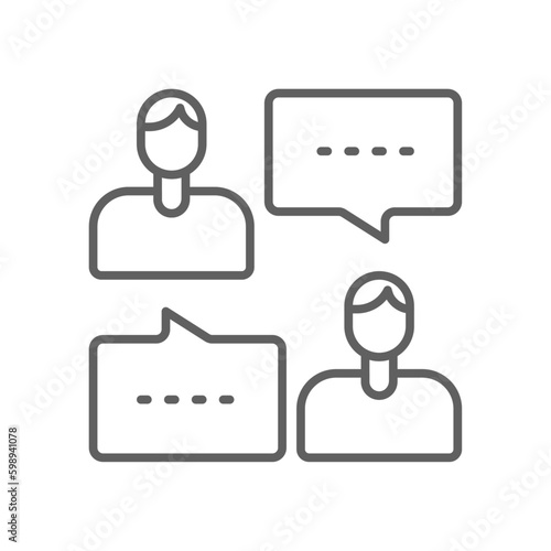 Chatting Meeting icon with black outline style. communication, message, bubble, talk, social, discussion, speak. Vector illustration