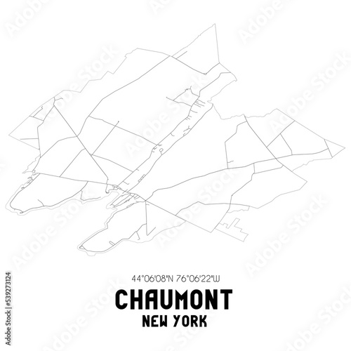 Chaumont New York. US street map with black and white lines.