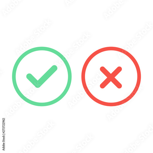 Check and cross in a flat design. Vector illustration