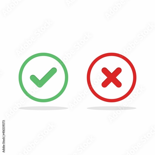 Check and wrong marks, Tick and cross marks, Accepted/Rejected, Approved/Disapproved, Yes/No, Right/Wrong, Green/Red, Correct/False, Ok/Not Ok - vector mark symbols in green and red. Isolated icon.