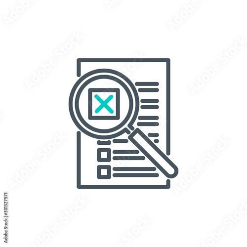 check box list page with magnifier glass outline flat icon. Single quality outline logo search symbol for web design mobile app. Thin line design logo sign Loupe lens icon isolated on white background