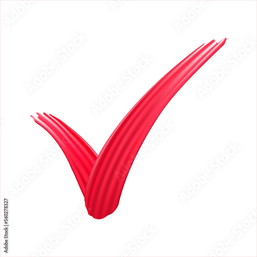 Check icon of realistic red paint brush strokes. Check mark symbol written smears by red paint. Sign isolated on a white background. Vector EPS 10