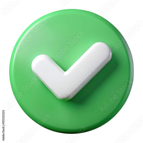 check mark button 3d icon in cartoon plastic style minimal isolated on transparent white background, clipping path