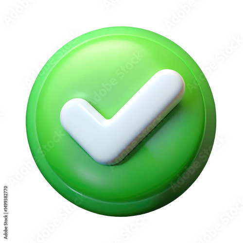check mark button 3d icon in cartoon plastic style minimal isolated on transparent white background, clipping path