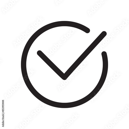 Check mark icon. Black tick vector. Circle approval sign. Simple validation symbol.