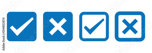 Check mark icon button set. Check box icon with right and wrong buttons and yes or no checkmark icon. checklist signs, approval badge. Flat and modern checkmark design,