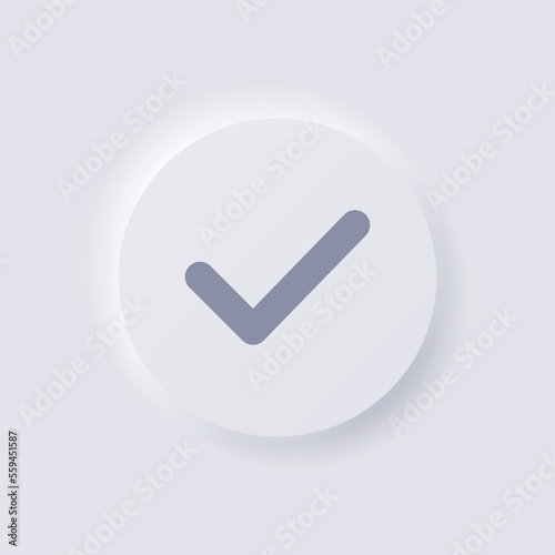 Check mark icon, Tick icon, White Neumorphism soft UI Design for Web design, Application UI and more, Button, Vector.