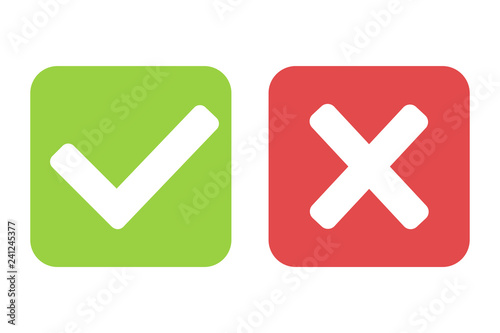 Check marks yes and no. Vector illustration round icons in a flat style isolated on white background.