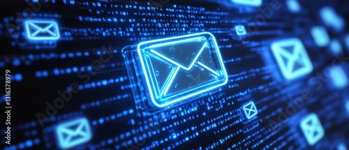 Check Your Messages: Glowing Email Envelopes on Digital Code