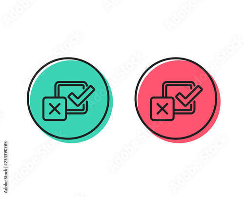 Checkbox line icon. Survey choice sign. Business review symbol. Positive and negative circle buttons concept. Good or bad symbols. Checkbox Vector