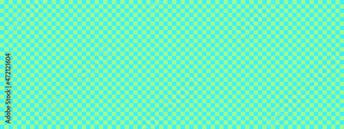 Checkerboard banner. Cyan and Pale Green colors of checkerboard. Small squares, small cells. Chessboard, checkerboard texture. Squares pattern. Background.