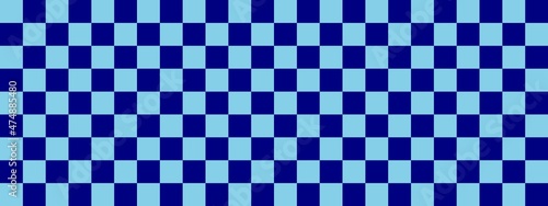 Checkerboard banner. Navy and Sky blue colors of checkerboard. Small squares, small cells. Chessboard, checkerboard texture. Squares pattern. Background.
