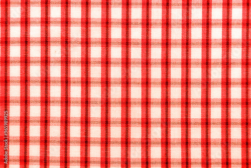 Checkered red fabric. Textile. Checkered fabric background with red and white cells
