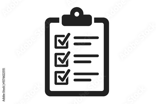 Checklist Icon with Clipboard, Marked Tasks, To-Do List, Task Management, Productivity Symbol, Black and White Vector Illustration, Isolated Transparent Background, Office Organization Concept