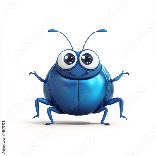 Cheerful Cartoon Beetle with Shiny Blue Shell on White Background