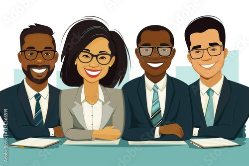 Cheerful diverse office team collaborates on project with enthusiasm in modern workspace