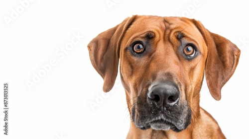 Cheerful Rhodesian Ridgeback Dog with Expressive Face on White Background