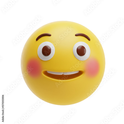 Cheerful Smiley Face Emoji 3D Rendering with Transparent Background