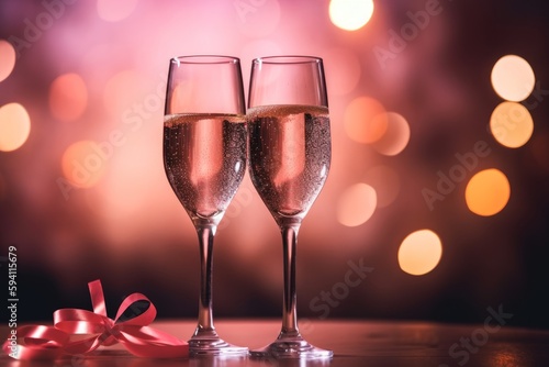 Cheers to the Night: Close-up of Champagne Glasses and Bokeh Lights, Generative AI