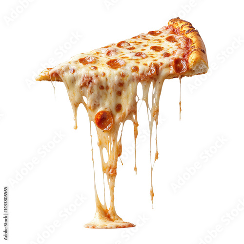 Cheese day concept. Melting pepperoni pizza slice on a black background. isolated on white background