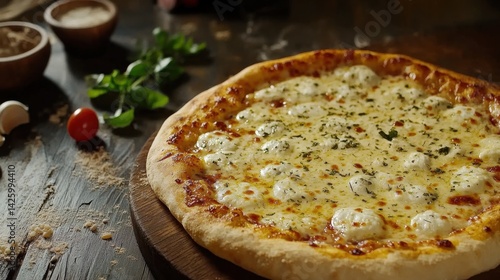 Cheese Pizza with Bubbling Mozzarella and Garlic Butter
