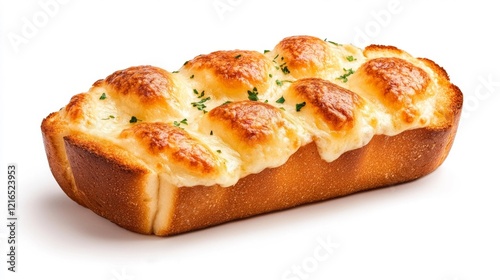 Cheesy garlic bread portion with crispy melted cheese isolated on white background. Generative AI