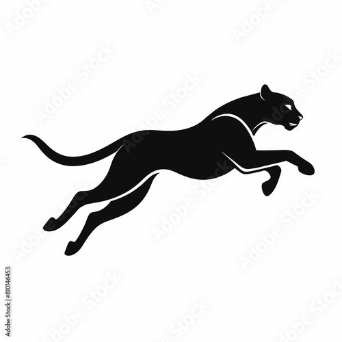 Cheetah in mid-air jump showcasing its pose in a solid black color silhouette