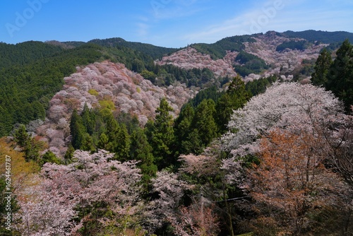 Cherry blossoms in bloom in the spring in Yoshino, Japan