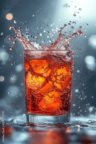 Cherry juice splash in glass bright red liquid dynamic motion refreshing summer drink with drops and swirls on white background