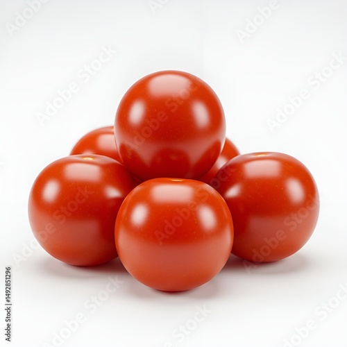 Cherry tomatoes in a small cluster, glossy and ripe, isolated on clean white background
