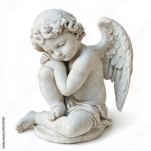 Cherub - serene marble statue of an angel child with intricately carved wings, embodying timeless grace and peaceful spirituality