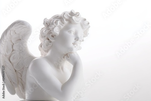 Cherub Angel Statue with Hand on Chin, Isolated on White Background, High Resolution