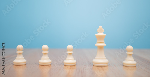 Chess King standing to Be around of other chess, Concept of a leader must have courage and challenge in the competition, leadership and business vision for a win in business games