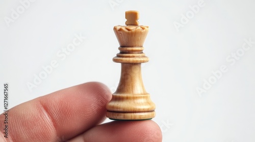 Chess piece in a hand, against a white background.