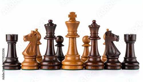 Chess royalty assembles in contrast—black and gold kings flanked by powerful allies, composing a visual metaphor for rivalry, hierarchy, and balance of power."