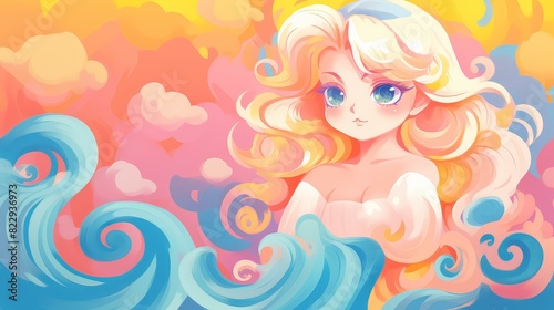 Chibistyle art with wavy lines, vivid colors in a cartoony, stylized digital format.