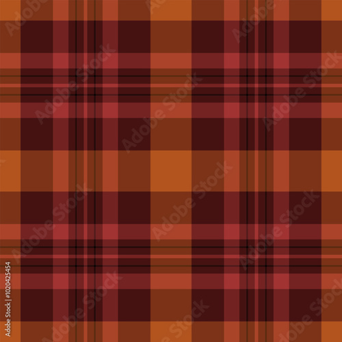 Chic plaid check texture, back pattern textile seamless. Damask tartan fabric vector background in red and dark colors.