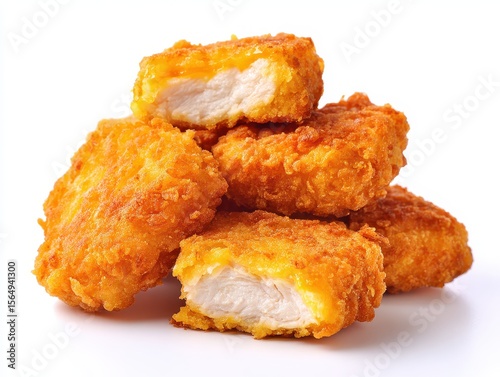 Chicken Nugget Isolated. Delicious Fried Fast Food Dish on White Background