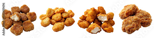 Chicken Nuggets Golden Brown Crunchy Bite Sized Isolated on White and Transparent Background