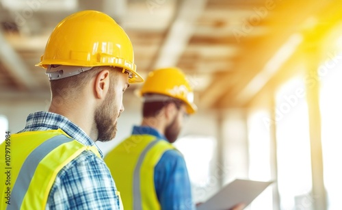 Chief Engineer Working Concept. Engineers Analyzing Design Models at Construction Site