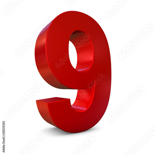 Chiffre 9 3d rouge