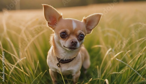Chihuahua, dog at dawn, purebred dog in nature, happy dog, beautiful dog