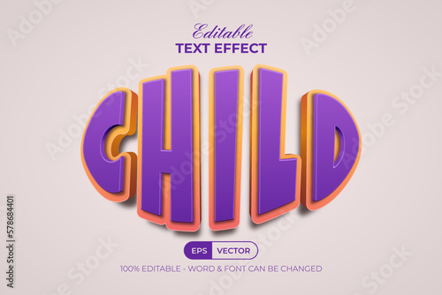 Child Editable Text Effect 3D Style Purple Yellow Color Gradient.