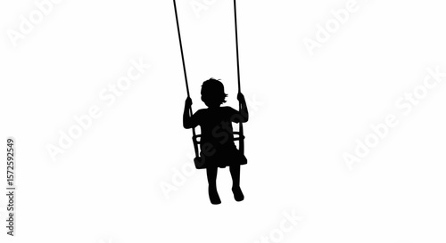 Child on Swing Silhouette – Peaceful Childhood Moment in Black on White Vector