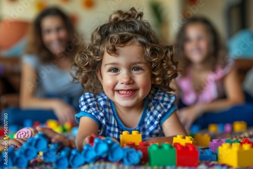 child playing blocks with family at home, capturing the joy and bonding moments shared together.
